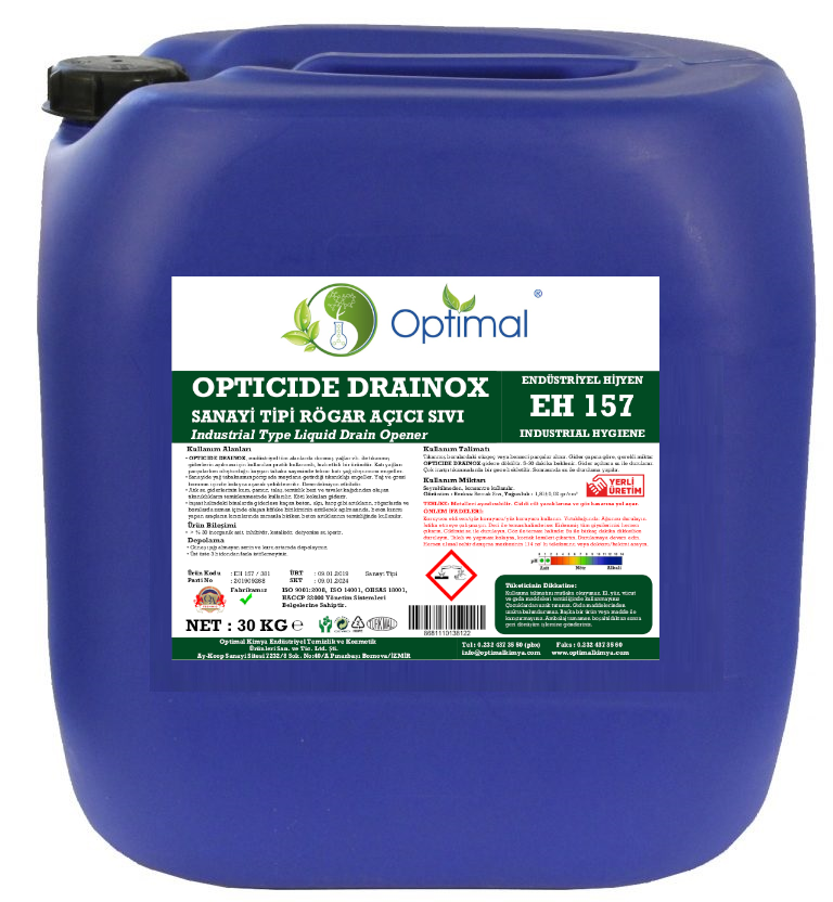 OPTICIDE DRAINOX, endüstriyel tüm alanlarda donmuş yağlar vb. ile tıkanmış giderlerin açılması için kullanılan pratik kullanımlı, hızlı etkili bir üründür. Katı yağları  parçalarken oluşturduğu kaygan tabaka sayesinde tekrar katı yağ oluşumunu engeller.