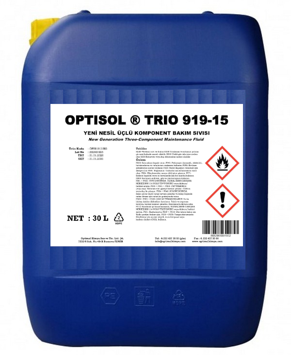 OPTISOL ® TRIO 919-15, özel olarak geliştirilmiş, aktif koruyucular ve korozyon önleyiciler içeren, yeni nesil bakım, kalıp ayırma ve temizlik sıvısıdır.