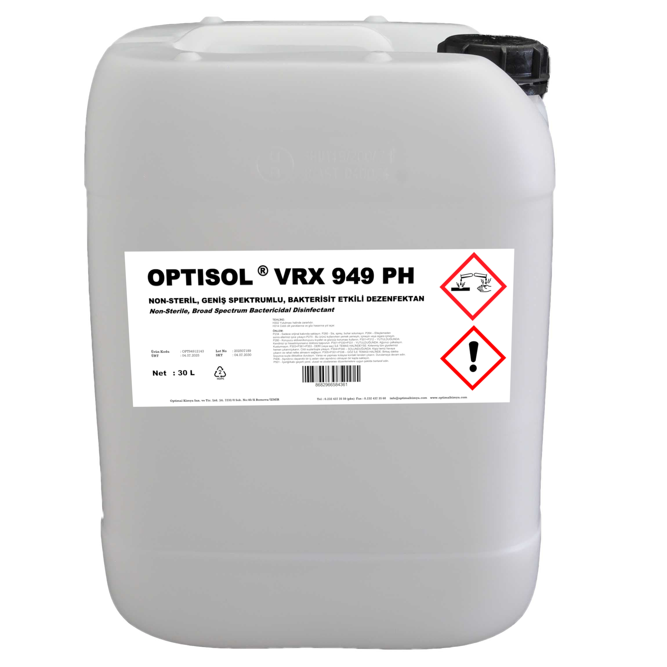 OPTISOL ® VRX 949 PH, hastaneler, tıbbi cihazlar ve ekipmanların temizliği ve dezenfeksiyonu için özel olarak geliştirilmiş, ilaç ve farmakoloji sektöründe, her türlü yüzeylerde kullanıma uygun, birçok virüs tipine etkili, aldehit, boya ve koku içermeyen yüzey dezenfektanıdır.